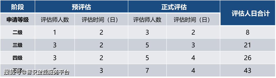 根据申请评估等级不同,评估时间参考如下: